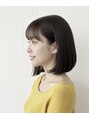 肩につかない程度のあご下ラインで切り揃えられたボブ。首元がスッキリ見えるため、小顔効果が非常に高いスタイルです。 裾にわずかなグラデーション(段差)を入れることで、内側に自然と入りやすい「内巻きシルエット」になっています。