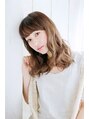 ツヤ感のあるベージュ系カラーにゆるく揺れるようなミックスカールスタイルです。カールがより透け感を出してくれます。