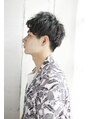 パーマ感のある毛先にウエットな質感が大人っぽい雰囲気のメンズスタイルです。かきあげた前髪がワイルドな雰囲気がでて人気の理由です。