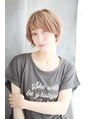 ハイトーンのニュアンスカールのショートスタイルです。毛先の外はねカールがかわいい人気のアレンジスタイルです。