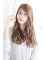 長めの流し前髪にAラインのミックスカールスタイルです。大きなカールはボリュームと動きがでて女性に人気です。
