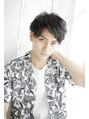 パーマ感のある毛先にウエットな質感が大人っぽい雰囲気のメンズスタイルです。かきあげた前髪がワイルドな雰囲気がでて人気の理由です。