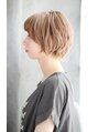 ハイトーンのニュアンスカールのショートスタイルです。毛先の外はねカールがかわいい人気のアレンジスタイルです。