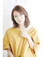 かきあげた前髪に鎖骨ラインのカールスタイルです。毛先のニュアンスカールは柔らかい動きをだした人気のスタイルです。