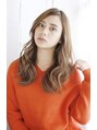 かきあげた前髪と顔まわりが華やかなミックスカールスタイルです。重めのAラインの人気のスタイルです。
