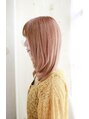 ハイトーンのピンク系カラーにレイヤーの入った内巻きカールスタイルです。扱いやすく人気のスタイルです。