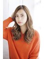 かきあげた前髪と顔まわりが華やかなミックスカールスタイルです。重めのAラインの人気のスタイルです。