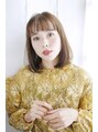 重く短く切り込まれた前髪が印象的な内巻きカールスタイルです。扱いやすくツヤ感のあるスタイルは人気の理由です。
