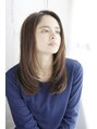 かきあげた前髪とさらっと流した髪が自然なストレートスタイルです。顔まわりのレイヤーが動きを出し人気のスタイルです。