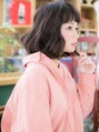 【スタイルは★ブックマーク★が便利】透け感シースルーバングでガーリーな雰囲気に。前下がりで輪郭カバーして小顔に仕上げたナチュラルボブ。ツヤカラーとレイヤーで動きを出し、重めスタイルに軽さとやわらかさをプラス。(メイク担当:北浦和店 棟方)