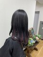 明度差、色味の差で存在感のあるインナーカラーです。毛先内巻きなどでも十分ですが、全体を外巻きで統一するとより立体感が出て可愛くなります。