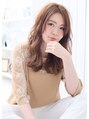 ロングレイヤースタイル。トップと顔まわりにレイヤーを入れて動きが出るようにし、前髪はリップラインからサイドにつなげて小顔 効果も
