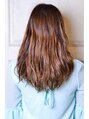 直毛に対してニュアンスパーマをする事によって、アンニュイな柔らかいウェーブで女性らしさを表現してます。毛量を重すぎず軽すぎない質感にしてますのでお手入れ簡単。カラーはミントグレージュで抜け感を足したミントカラーに。