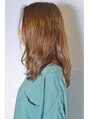 胸ぐらいの長さに重ためのレイヤーを入れ、ゆるく縦にパーマが出るようにし、ふくらみを抑えたパーマです。カラーはスモーキーライムで夏の淡さを出し、髪が、より重く見えないようにしてます。