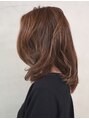 伸ばしかけの方にオススメ。ハイライトとローライトを組み合わして、陰影をつけカラーデザインを活かした、ミディアムスタイルです。前髪はウザバング希望の方、前髪デザインを遊びたい方もオススメです。