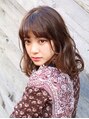 グレージュカラーで可愛さの中に大人っぽさをプラスしたセミロングスタイル!32mmミックス巻き。伸ばしかけの方でもオススメの重めスタイルです!簡単スタイリングなので朝のお手入れも楽!ベージュカラー、グレージュカラー 黒髪、暗髪オススメ