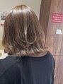シークレットハイライトをいれることで、全体ブリーチしなくても透明感が出るオススメメニューです♪シークレットハイライトとニュアンス巻きの相性抜群☆彡