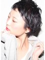 モノトーンコーデも難なく着こなすエッジィなショート。ブルーブラックのカラーとツヤを強調したスタイリングで、モード感を。クールな印象の黒髪も、質感を変えることで品よく、おしゃれにまとまる。