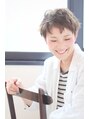 マニッシュなショートスタイルで男性っぽくなりすぎないのは、毛先のハネ感がポイント。かっこいい中にもどこかかわいらしさを。ピンパーマで全体にやわらかい質感を出し、スタイリングしやすくします。おでこの見せ方が似合わせのコツ。
