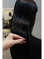 自然な黒髪カラーに染めて仕上げのセットはトリートメントスプレーとグロッシーネクタイのみで艶を出しました。酸性ストレートをかけると朝がオイルのみでセットできるようになるのでクセなど気になる方は一度メニューをご相談ください。