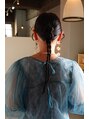 全体カラーをしてトリートメントで髪の状態を整えてから、参列セット。ヘアデザインに合わせて前髪もパッツンにカットしました。