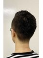癖毛をいかした震災刈りです!暑い夏にオススメなショートスタイルです。直毛の方やサイドが広がってしまう方はパーマで抑える事も出来ます。ツヤ感とホールド力のあるポマードでセットしました!全体につけた後にメッシュコームでとかすだけで大丈夫です。
