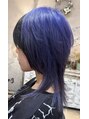 全体に軽めにレイヤーを入れたウルフスタイルにブリーチカラーでブルーラベンダーにしました。軽めスタイルなので、スタイリングもお手軽で、動きのあるスタイルが好みの方におすすめです。