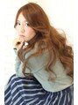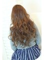 カラーは明るすぎない程度のジンジャーカラーに!32ミリのアイロンでランダムに巻いて、スプレーWAXを使い、エアリー感を加えると外国人風ふるゆわロングスタイルの出来上がり☆