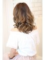 しっかりかけられたフェミニン系カール!まとまりを残しつつ毛先を少しちらして無造作感を演出!落ち着きを持たせたカラーに目にかかるぐらいのうざバングで少しグラマラスな雰囲気に!!目にかかる髪のすけてる感じがポイントです♪