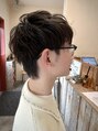 メンズ ナチュラルパーマ×刈り上げなし×ナチュラル2ブロックUP