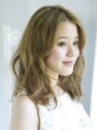 ボリュームの出にくい方にオススメ。上から大きいウェーブを出すことで、ラフな抜け感のあるミディアムに。カラーもグレージュ系でパーマとの相性もバッチリです。力のぬけたリラックスミディアムスタイル。オススメです。