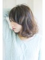 ベタ塗りではなく、「フロスティング」というカラー技術を使い自然な立体感の出るカラーリングを施しました。パーマもこなれ感のあるラフな感じに。カットはスライドカットで重めのカットベースの中に軽さをもたせました。