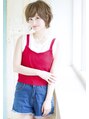 トップにパーマをかけてふわっとエアリーに、襟足、もみあげに外ハネパーマをかけることで大人カジュアルにしました!ふわっとクシュっと小顔ショート♪このスタイルが人気なのはとにかくスタイリングが簡単です!カラーは『ブルージュ』♪