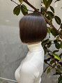 人気のミニボブ×ぱつっとボブ。切りっぱなしラインでも丸みボブでまとまり◎首元すっきり小顔見え。艶カラー&透明感カラーのブラウンで上品なツヤ髪に。