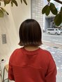 トップに暗めのアンブレラカラーをすることにより引き締めさせていただきました。伸びても気にならない&ダメージレスなカラーなのでハイトーンが飽きた方にもオススメ。カットはもとのクセを活かして外ハネボブに。スタイリングも楽チンです。