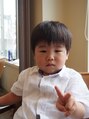 小さい子のスッキリスタイルです。ちょっと幅広目にツーブロックにしてることで頭の形が良く見えるようになっています。最高の笑顔ショットを撮ってみました