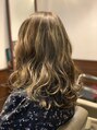 全体的にケアブリーチで細かいハイライトを入れて、ベージュ系のカラーをしてます!くっきりと筋感を出したいので、しっかりと時間をおきます。低めのレイヤーで重めベースでカットします。
