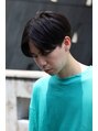 素髪風のナチュラルセンターパートマッシュ。スタイリングはシアバターでさらっと決まるスタイル。刈り上げは長めで自然に溶け込むようにカット。