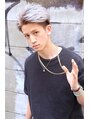 七三気味のオールバックスタイル!刈り上げ部分とのメリハリで横顔がキマります!モード、ストリートファッションにオススメです!カラーリングは、ブリーチ数回したあとにパンチの効いたラベンダーミストカラーをオンカラー!