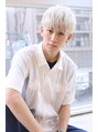 全頭をブリーチ数回の髪にホワイトベージュをオンカラー!カットは、マッシュベースをツーブロック刈り上げにして軽めの質感にすることで奇抜なカラーでも爽やかな仕上がりに!