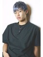 少し長さを残し気味の刈り上げの無造作ネープレスショートスタイル。カラーリングは、毛先に残ったブリーチ毛を活かしてグラデーションのブルージュカラー。