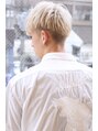 全頭をブリーチ数回の髪にホワイトベージュをオンカラー!カットは、マッシュベースをツーブロック刈り上げにして軽めの質感にすることで奇抜なカラーでも爽やかな仕上がりに!