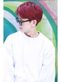 毛流れがキレイに出るように表面に段を入れたセンターパートスタイル。黒髪でも充分キマりますが、ブリーチしたディープレッドをオンカラーすることでよりインパクトが出るようにしています。Men's styleお任せ下さい!!