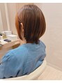 アプリコットカラー丸みショートボブ絶壁オレンジひし形40代UP