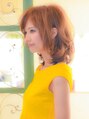 似合わせ小顔カット。前上がりベースの段を入れたスタイル!毛先に内外のカールをつけて毛先のぶつかり合いで透け感とふんわり感を!カラーはオレンジブラウンで元気なイメージに!【お気に入り頂いたスタイルはブックマークして頂くと便利です】