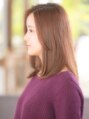 似合わせ小顔カット。大人可愛いストレートスタイル♪ワンレンベースで表面に低いグラデーションを入れながら、ゆるやかな前上がりにカット。前髪はリップラインでかき上げやすいようにレイヤーを。カラーはオリーブベージュで柔らかさとツヤ感をアップ♪