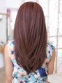 似合わせ小顔カット。全体に段をいれ女性らしいストレートロング。前髪は軽くし過ぎず少しすき間が見えるかなくらいの下ろし流しで目力アップ!カラーはピンクブラウンで女性らしさを演出!【お気に入り頂いたスタイルはブックマークして頂くと便利です】