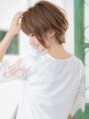 似合わせ小顔カット。大人可愛い前下がりのショートレイヤースタイル。髪にボリューム、毛先に束感はカットだけでも表現できます。カラーはアッシュブラウンで毛先の動きと透明感を引き立てます。【ブックマークをしてご提示下さい】