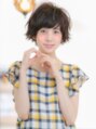 似合わせ小顔カット。前下がりボブベース。襟足をタイトに表面と顔周りに段を入れたスタイル。カラーは8トーンのアッシュベージュをのせて透明感を。全体にワンカールのパーマと外ハネを作りかけて外ハネ大人かわいいスタイルに。