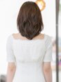 似合わせ小顔カット。肩についてハネるのが嫌な人にもオススメ♪鎖骨レングスのローレイヤベース。中間~毛先にかけて質感調節し、前髪は斜めに小顔カット。MIXパーマで巻きすぎずに柔らかさを引き出します!カラーはプラチナブラウンで透明感を。